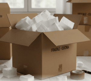 Utilizzare materiali specifici, come la gommapiuma, le scatole cartone ondulato, anche a tripla onda. o il pluriball di alta qualità, significa creare una barriera resiliente contro urti, compressioni e agenti atmosferici durante ogni fase del trasloco. Scegliere quelli corretti non serve solo a prevenire rotture, ma ottimizza anche i tempi e i costi dell’operazione. Un imballaggio adeguato permette di impilare le scatole in modo più sicuro all’interno del furgone, massimizzando lo spazio e riducendo il numero di viaggi necessari.
